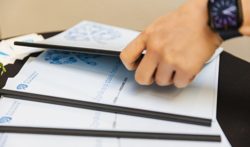 Koordinátoři Sítě k ochraně demokracie Vendula Menšíková a Robin Ujfaluši provedli účastníky a účastnice ve stručnosti hlavními závěry celé Zprávy a setkání jsme zakončili neformální diskuzí všech zúčastněných.